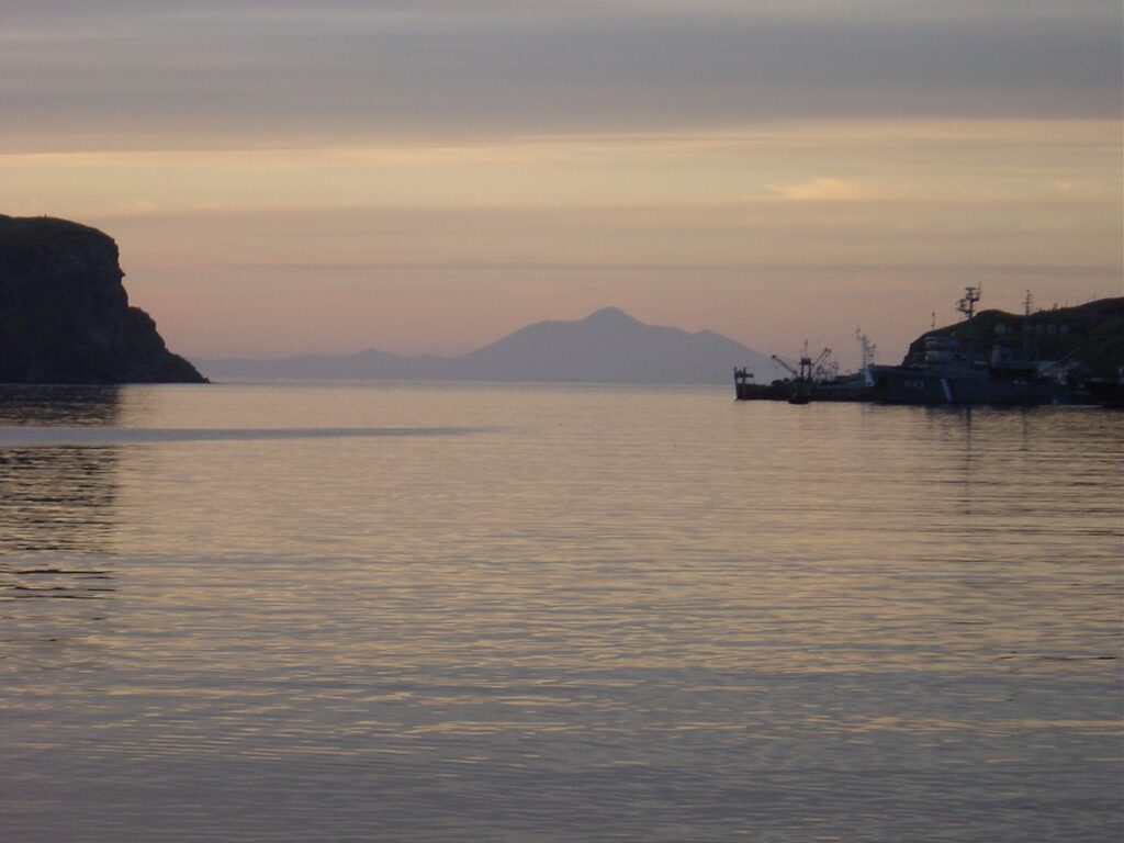 島の中心集落・斜古丹からは,国後島の二重火山・爺々岳のシルエットが美しく見える。北方領土は日本とロシアとの係争地である。だが,アイヌの愛した風景であることも思い起こすべきだろう。