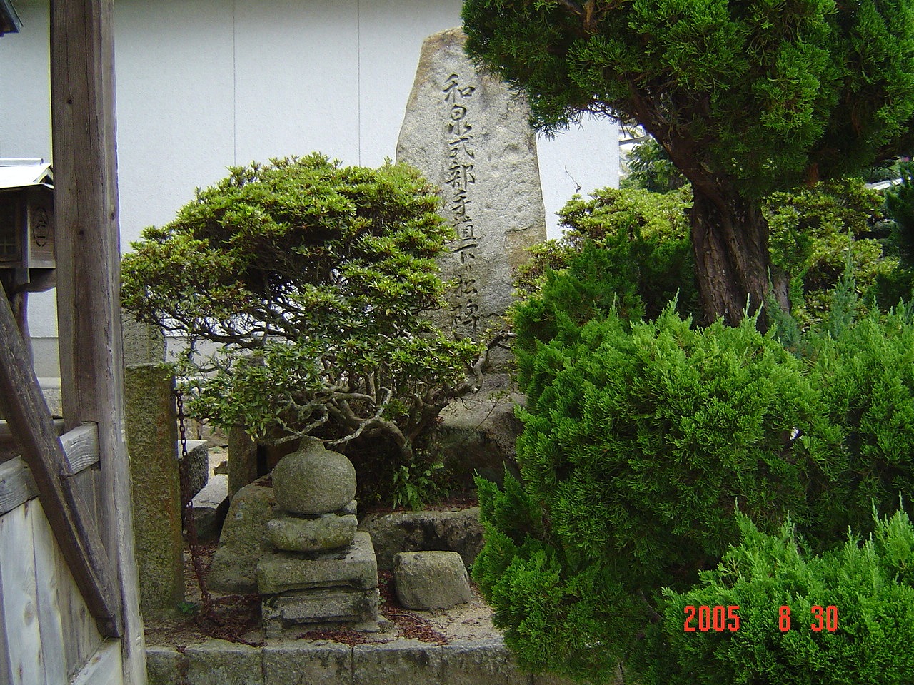 古江浜の金比羅宮・胡神社の右手に「和泉式部手植下り松碑」がある。碑は大正六年に建てられた。