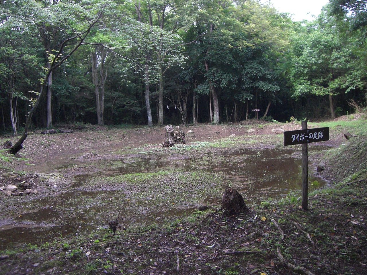 ここで紹介するのは,岡山市にある吉備中山の山中にある「ダイボーの足跡」だ。縦横20メートルくらいで,深さは1~1.5メートルくらい。雨後には水がたまっている。