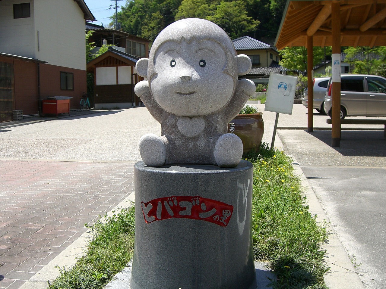 ヒバゴンとは何か?答えは自分の心の中にある。とはいえ,写真の石像は,ずいぶんと可愛らしく描かれているようだ。