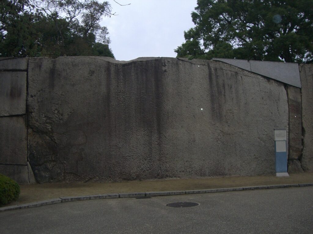 この巨石がある桜門枡形は,寛永元年に岡山藩主・池田忠雄が担当したもので,備前産の良質花崗岩が用いられているということだ。