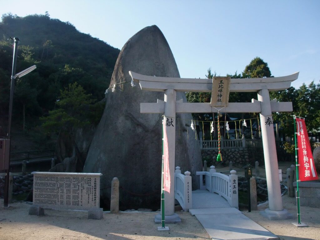 玉野市玉に鎮座する「玉比咩(たまひめ)神社」の境内に巨岩がある。