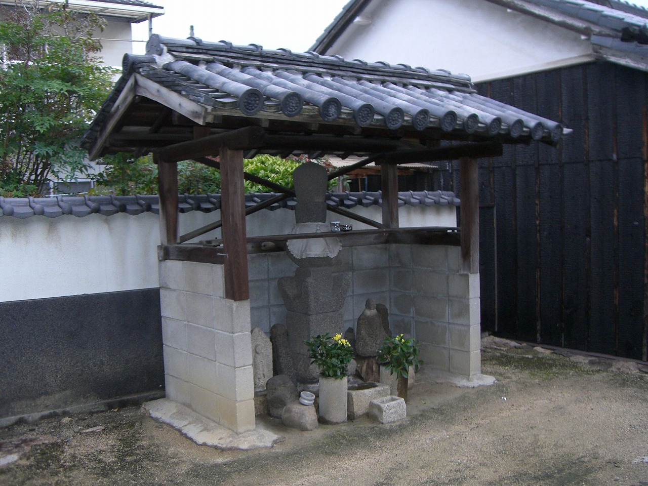 郡という地名は,古代の児島郡の中心地であったことによるものだ。歴史ある土地ゆえか,中小路,西小路,戸上小路などの地名が伝わり,南小路と呼ばれているところに,飽浦三郎右衛門信胤(のぶたね)の墓がある。小路が迷路のように続いている上に,案内板がないので見つけにくい。