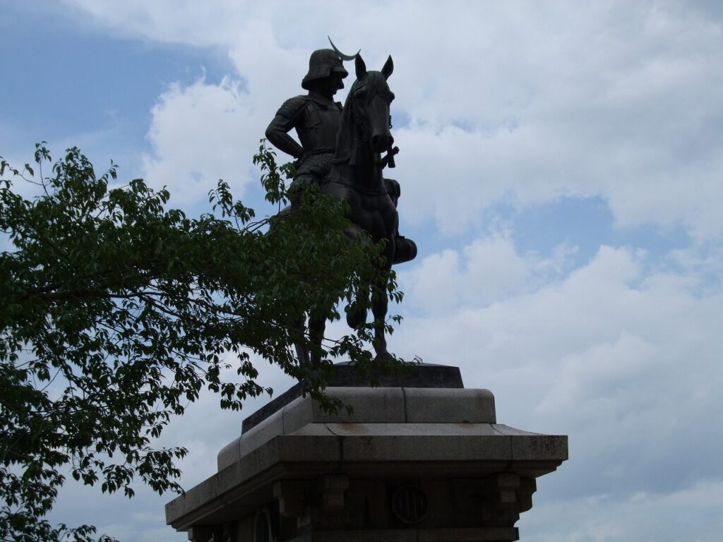 仙台市青葉区川内に「仙台城跡」があり,その本丸跡に「伊達政宗公騎馬像」が置かれている。