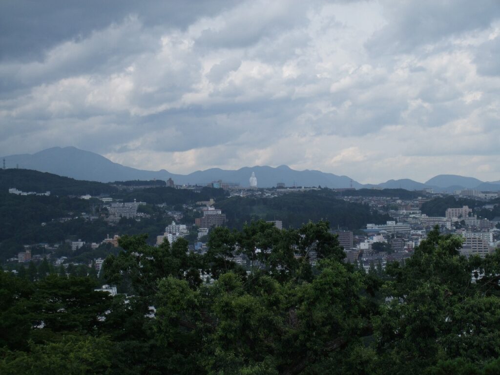 仙台城跡からはるか遠くに「仙台大観音」を望むことができる。さすがに政宗公のお膝元はスケールが違う。我が城を観音様が目に見える形で守護してくださるとは,政宗公も思いもよらぬことであったろう。