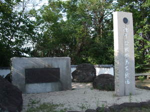 写真でも見て取れるが,石碑の上部に黒い丸がある。これが日蝕を表している。暦道,天文に詳しい平家ならではの勝利であった。
