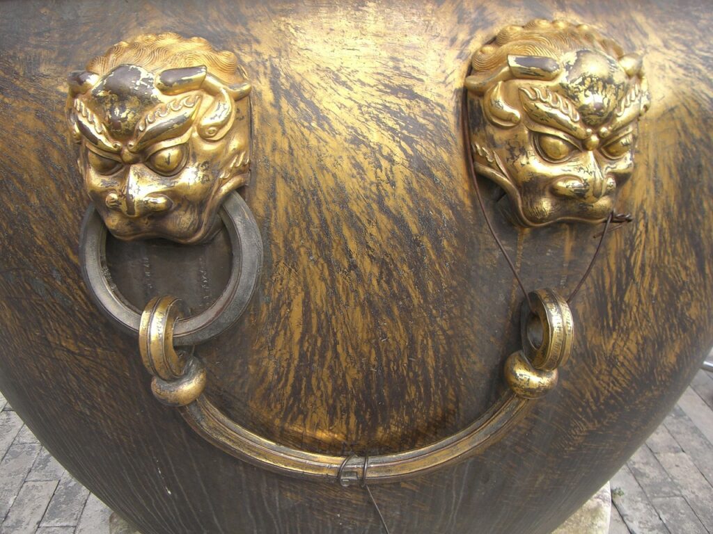 太和殿の横に銅製の甕があり,金が削り取られた痕がある。義和団事件の際,八か国連合軍の兵士が銃剣で行ったものらしい。中華世界の心臓部がこの有様だ。清末期の苦悩が偲ばれる。