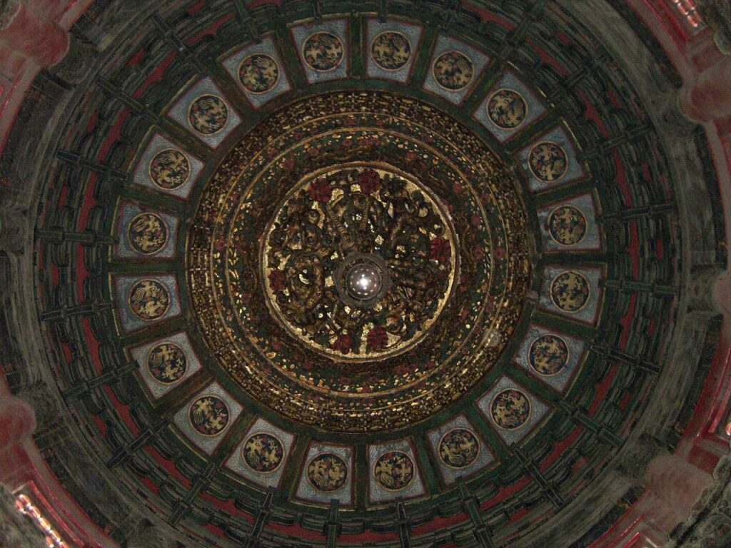 御花園の東辺に位置する万春亭の内部を見上げている。曼荼羅のようでありルーレットのようであり,中心に向かっているようであり放射しているようにも見える。それほど大きくはない明代の建物だが,中華世界を象徴しているように思えたことだ。