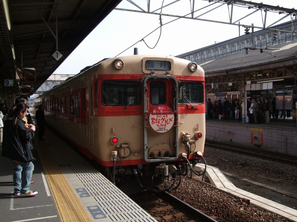 ホームで待つ人々が何か落ち着かない。もしやと思ったら,やはりそうだった。郷愁を誘う汽車の入線である。撮り鉄ではないのだが,思わずカメラを向けてしまった。この汽車はいったい何なんだ。にわか鉄の旅が始まった。