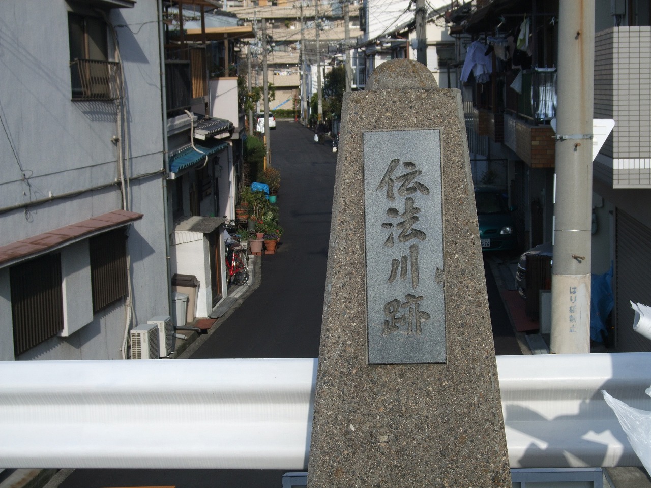 大阪市此花区伝法五丁目に「伝法川跡」の碑が建てられ,裏には次のように記されている。
