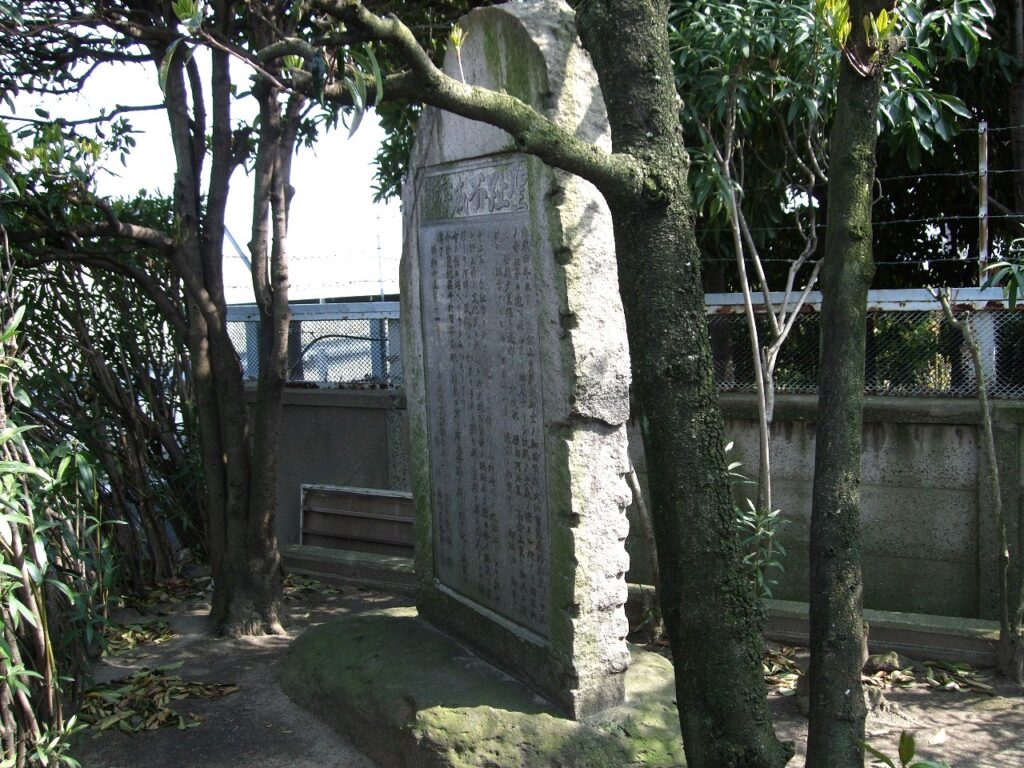 この豪奢な建物には,船で乗り入れることができ,中国船をも近付けられる。国際的でハイソな別荘・寺江亭の様子を思い浮かべ,次に,現在の工場群と堤防のある風景に目をやると,当然ながら隔世の感を禁じえない。「聖趾不滅」の碑文には,次のように記されている。