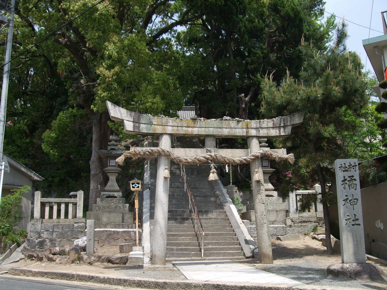 この神社は「宮がいち」にあったが慶長年間に現社地に遷座したという。『発心集』は江戸期によく読まれた説話集だ。『発心集』の普及と橘神社,この二つをつなぐのは霊験を語り伝えた旅芸人か,発心に導く僧侶か,それとも学問好きな神官か。橘の神紋は,近くの福山市立柳津小学校の校章となり,神社は書道上達,学業成就の神様として崇められている。橘逸勢の娘を孝女と称賛する声は,ここでは氏神様への信仰と昇華している。