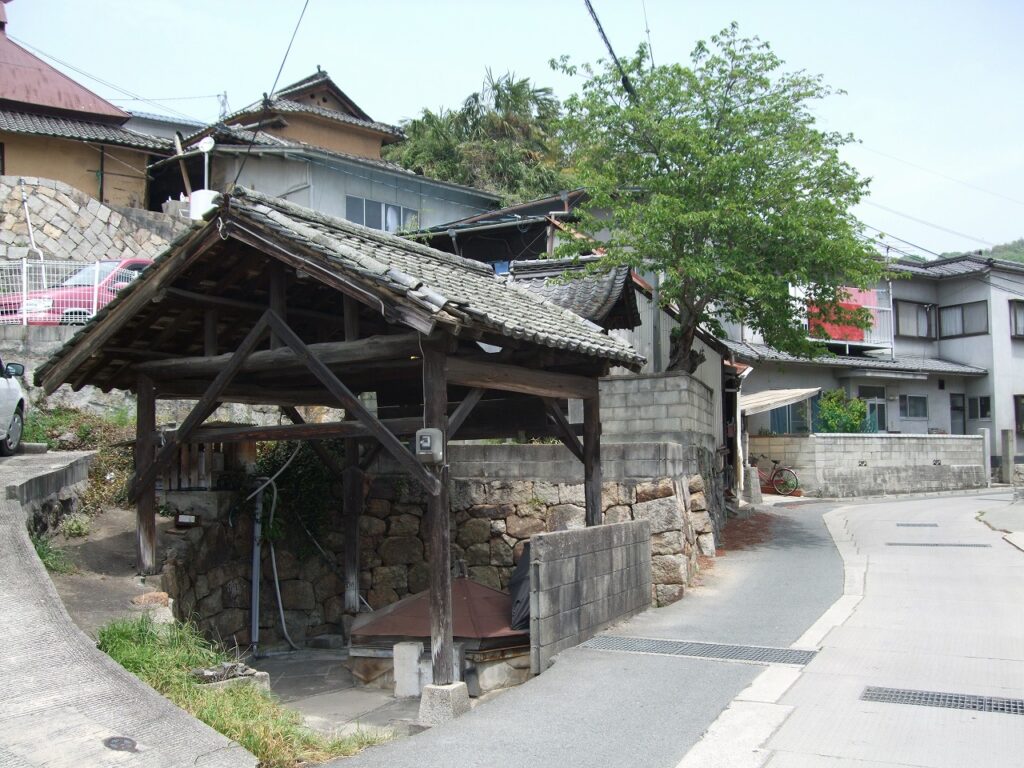 上の写真が「岩の井」で,地域の原点ともいえる場所だ。地図を大きく広げると,この地は「袋の海」と呼ばれる松永湾の奥に位置することが分かる。周囲を陸に囲まれているため波が静かで,船舶の停泊における好条件を具備している。