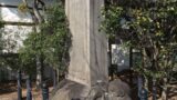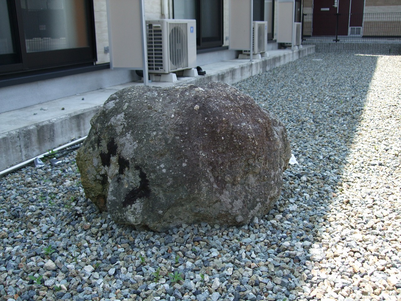 投げたのは聖徳太子だとされている。アパートの軒先に投げ込むとはあまりにも危険、ではなくて、アパートを建築した際に庭石風に取り込んだものだ。それだけに見つけにくい史跡である。