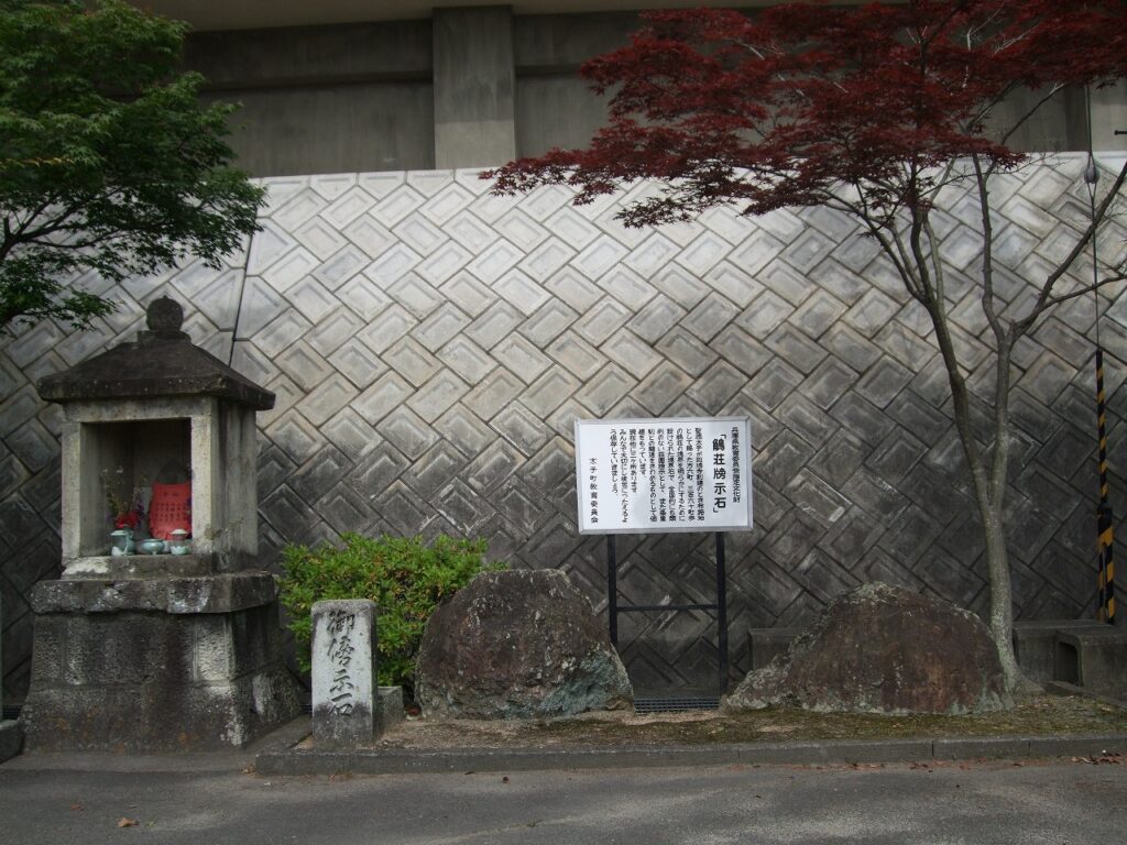 投げ石とは、聖徳太子が檀特山の上から投げたことに由来するという。太子信仰の遺跡でもあるのだ。