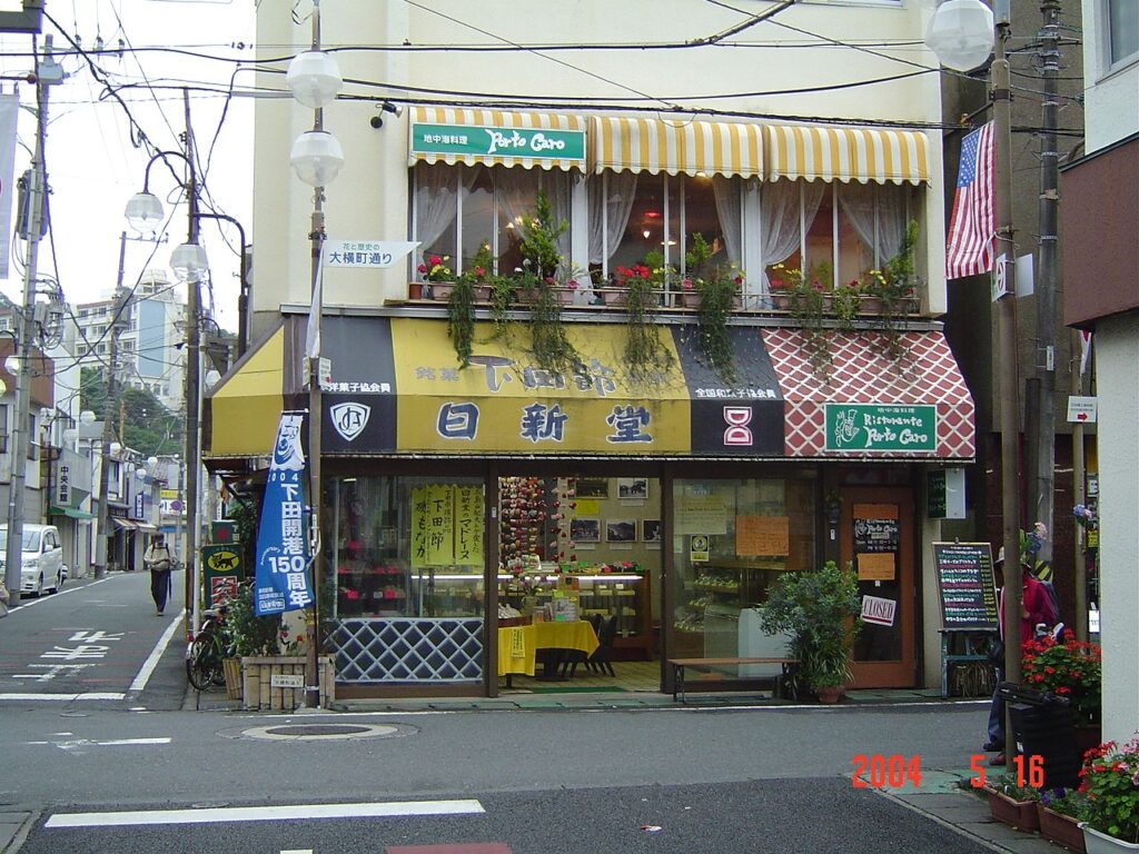 下田市三丁目に創業大正十一年のお菓子の老舗「日新堂」がある。