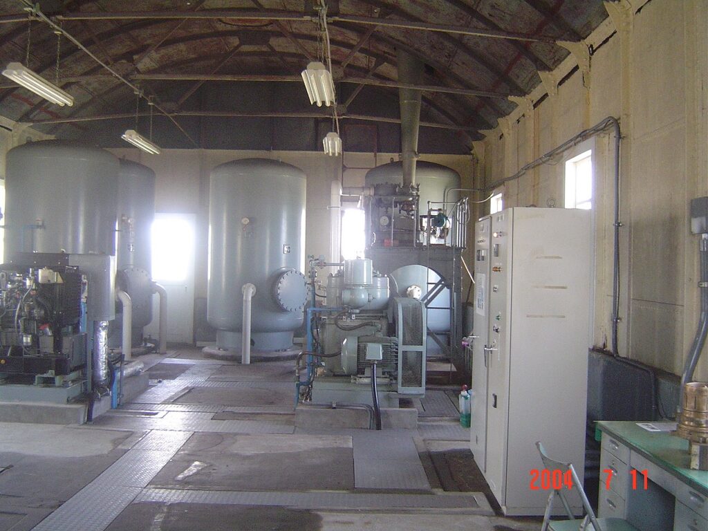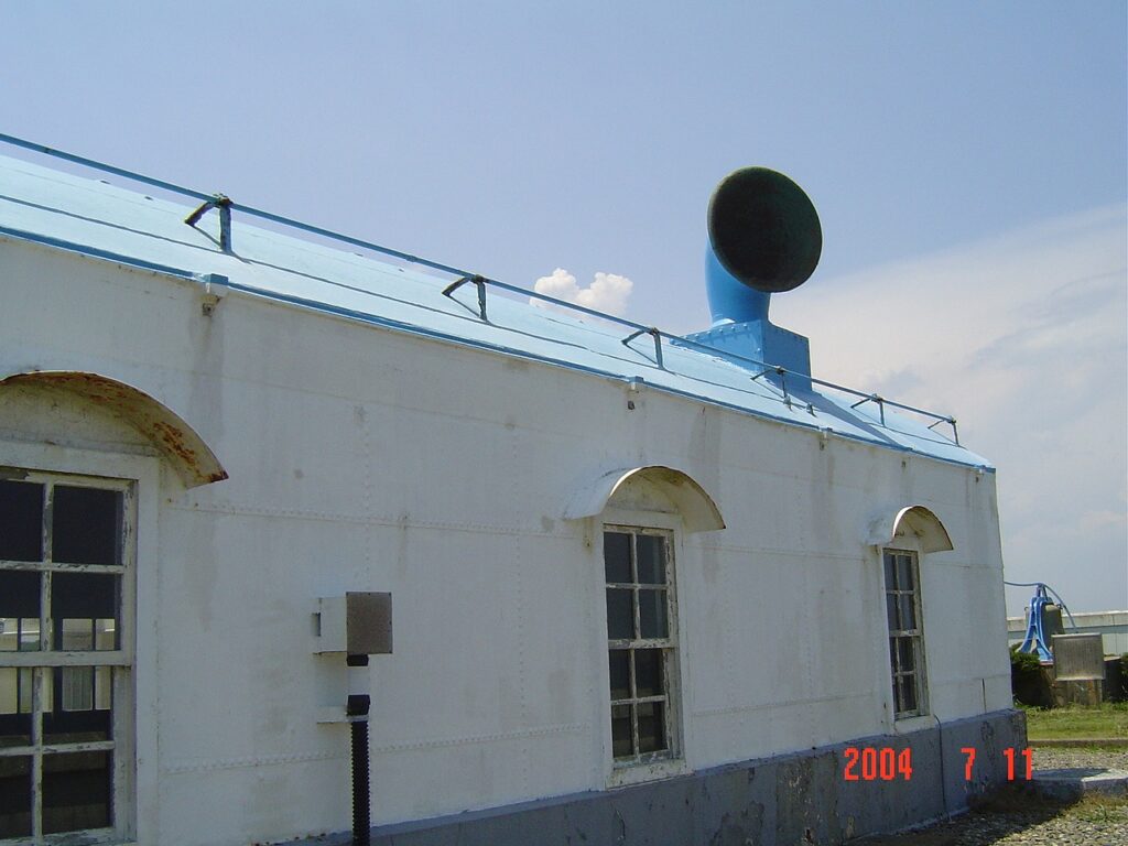 この犬吠埼灯台には珍しい霧信号所があった。視界が1.8キロ以下になると35秒周期で5秒間の霧笛を鳴らしていた。圧縮空気によって発生させた「ウォーン」という音だったそうだ。写真撮影時は現役だったが、平成20年3月31日をもって廃止された。