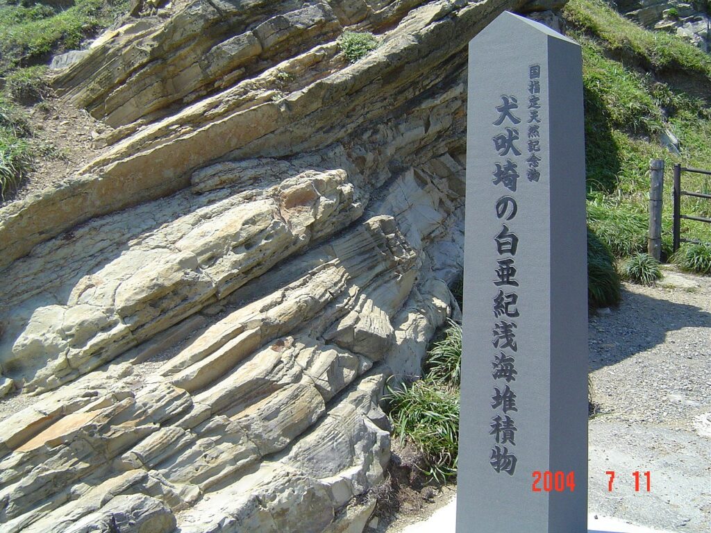 ところでこの犬吠埼を形成している岩石は、地質学上では中世代白亜紀層に属するものとされているので、少なくとも七千万年から一億年以上の風雪に耐えてきているものと言うことになります。 銚子市