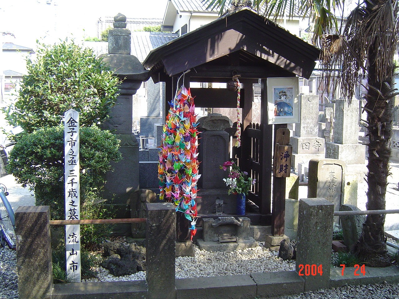 神社のような屋根付きの立派な墓には千羽鶴が供えられている。今でも随分と慕われているようだ。ここは流山市教育委員会に教えてもらうしかない。『流山のむかし』を読んでみよう。