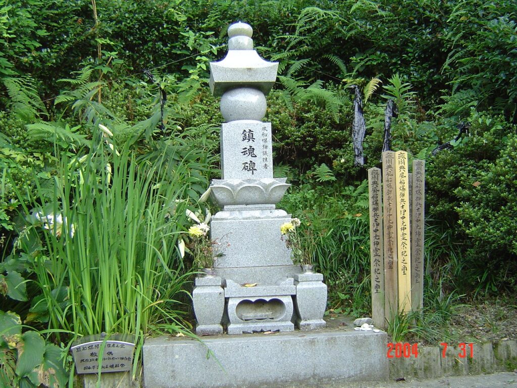 県道354号線沿いに「風船爆弾犠牲者鎮魂碑」がある。上記碑文の語る大津基地における誤爆事故の死者を弔ったものだ。
