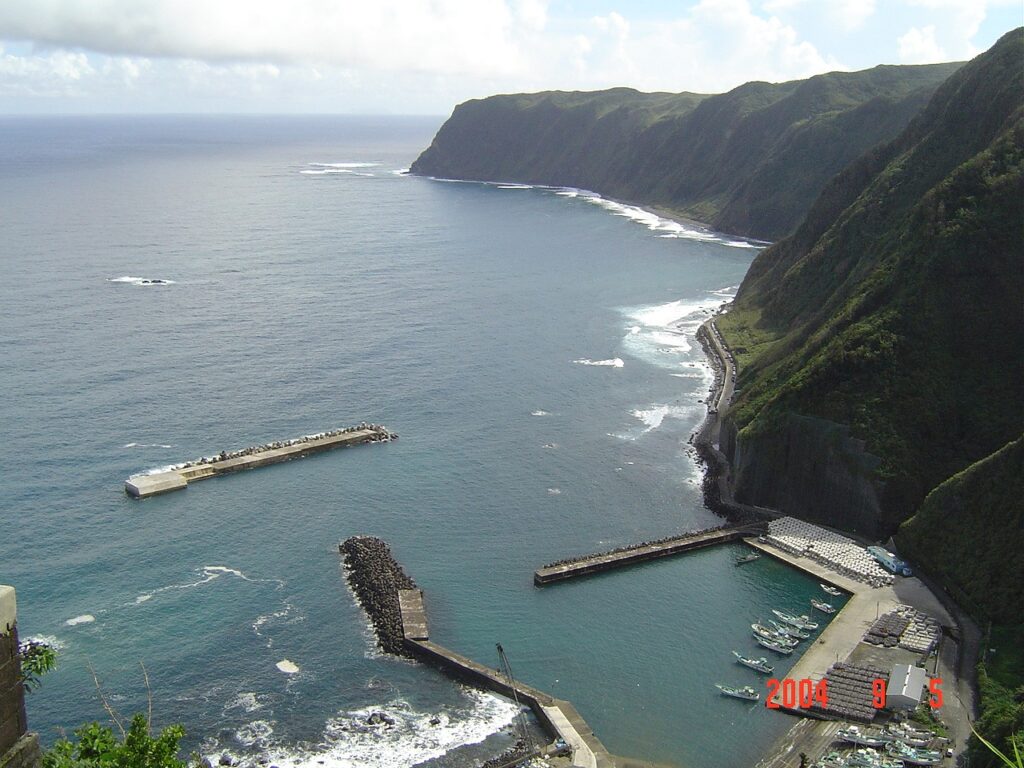 空中撮影かと見まがうようなアングルである。手前の漁港は洞輪沢港、向こうの岬は小岩戸ヶ鼻、その左手の沖の彼方に幽かに青ヶ島が見える。そこが青酎の故郷である。