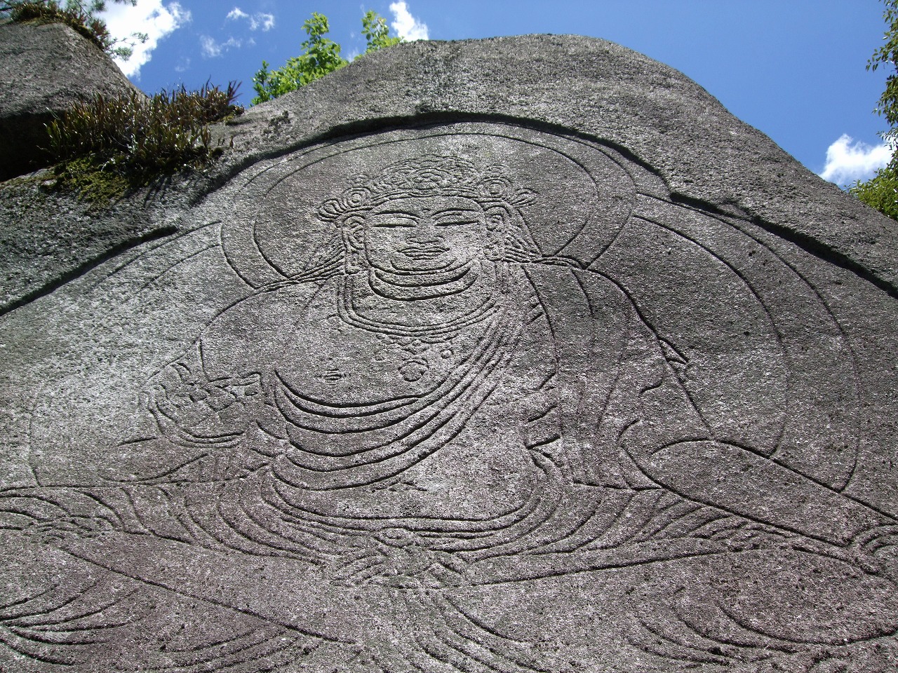 求聞持法(ぐもんじほう)とは、虚空蔵菩薩の真言を百万遍、百日間続ける密教の修行で、記憶力が増進するという。空海が求聞持法を行うことによって、明星の光跡が石を穿ち、磨崖仏が出現した。レーザー彫刻というわけか。