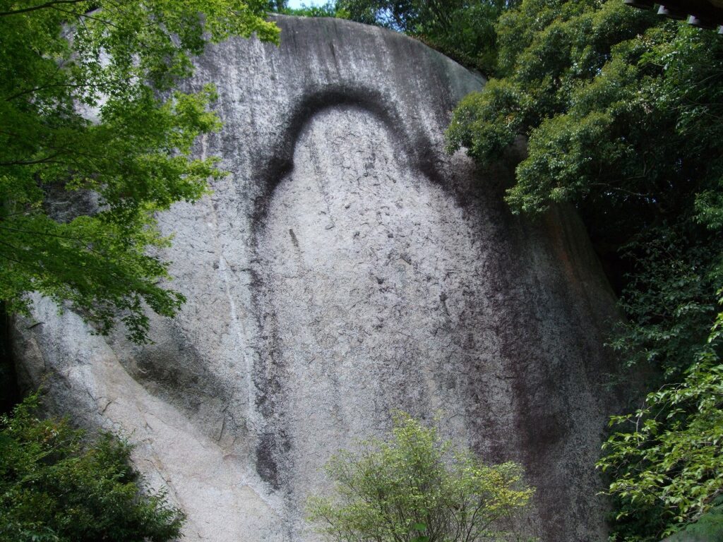 笠置寺の本尊仏であり、高さ二〇米巾十五米の石面に弥勒如来が彫刻されていたが、前に建てられていた禮堂が三度の火災により焼亡、その都度石面も火にかかり仏像は磨滅してしまった。