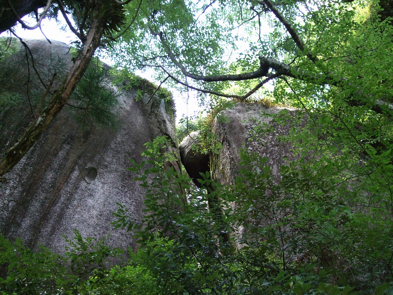 巨石信仰は分かる気がする。迫力が違うのだ。自然が造ったと聞けば不思議だと思うが、神がお造りになったと聞けば納得してしまう。このような場所には何らかのパワーが秘められているに違いない。下の写真を見よ。二つの巨岩が小さな岩を支えている。