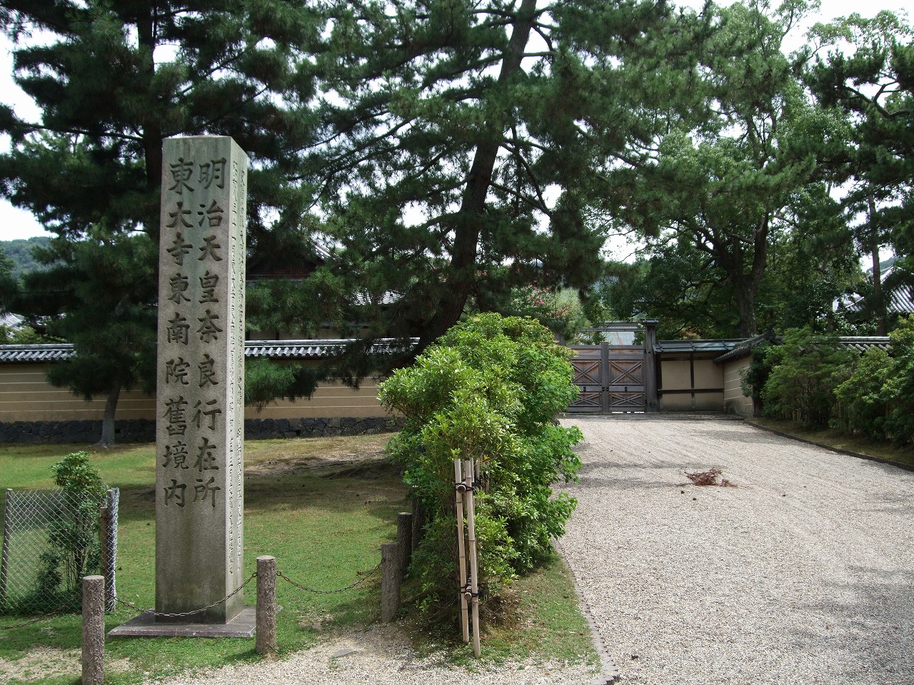 そんなエピソードも興味深いが、ここで注目したいのは明治天皇と蘭奢待である。もう一度写真を見よう。「東大寺東南院旧境内」と同じ大きさで「明治天皇奈良行在所」と刻まれている。東南院旧境内は昭和9年に国の史跡となったが、前年の昭和8年に明治天皇聖蹟としての指定も受けていた。史蹟名勝天然紀念物保存法においては両者は同格の史跡だったのである。ちなみに説明板に東大寺旧境内の指定年が昭和6年とあるが、昭和7年が正しいように思う。