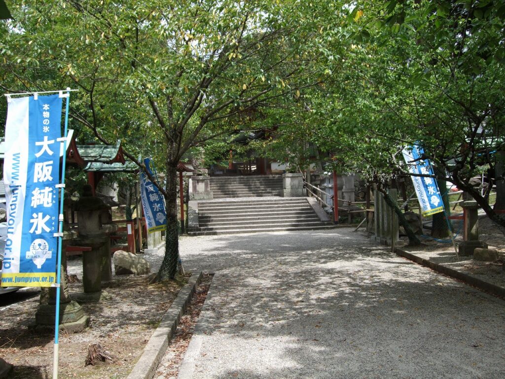 献氷祭が復興したのは明治45年。京都の龍紋氷室という製氷会社(現在のニチレイへと続く)と大阪氷業界の力によるもので、現在も写真のように業界の崇敬が篤い。