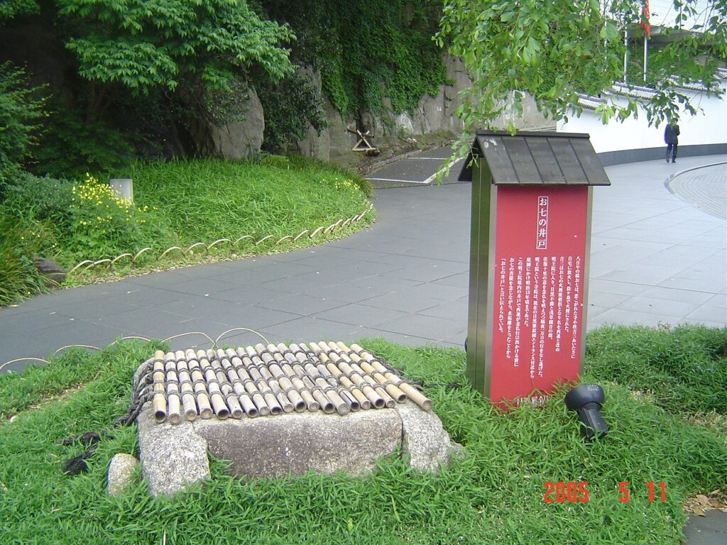 この明王院境内の井戸で西運が念仏行に出かける前にお七の菩提を念じながら、水垢離をとったことから「お七の井戸」と言い伝えられている。