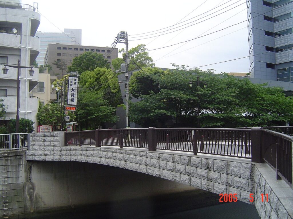 太鼓橋(たいこばし)は、行人坂から目黒不動へ向かう道筋の目黒川にかかる橋です。