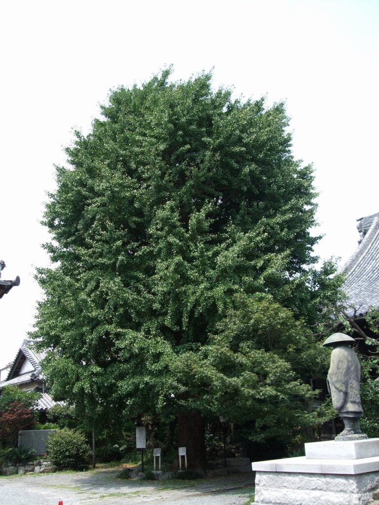 境内には樹齢500年以上という「いちょう」の木があり、府指定の天然記念物である。樹高17mの巨木の手前に小さく写るのは宗祖親鸞聖人である。その法統を継ぐ顕如上人が滞在した時に「いちょう」はどのような姿だったのだろうか。
