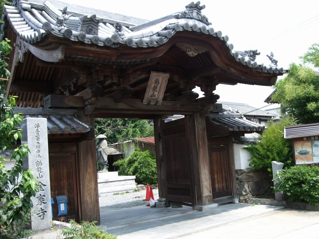 浄土真宗本願寺派のお寺で、寺名を示した山門左の石柱の側面には「親鸞聖人御真影御駐籃之地 元御兼帯所 深日御坊」と刻まれている。「兼帯所」とは西本願寺宗主が住職を兼帯するという格式ある寺院のことだ。文明18年(1486)に本願寺蓮如が布教のため紀州に向かう途上、この寺に泊まり山号と寺号を授けたという。