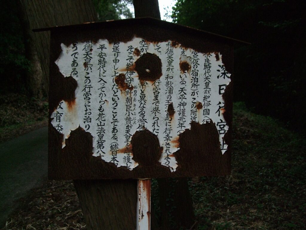 行宮(あんぐう)とは天皇の仮の宿泊所を言うが、この和歌山に近い地にお泊りになったのは、何方だろうか。説明板を読んでみよう。