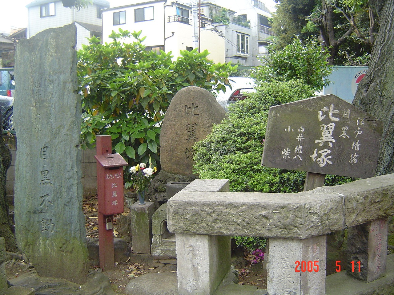 目黒区下目黒三丁目の目黒不動に「白井権八小紫比翼塚」がある。