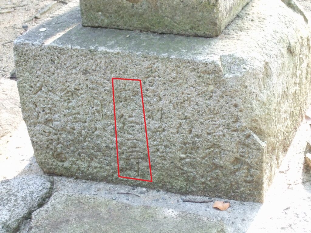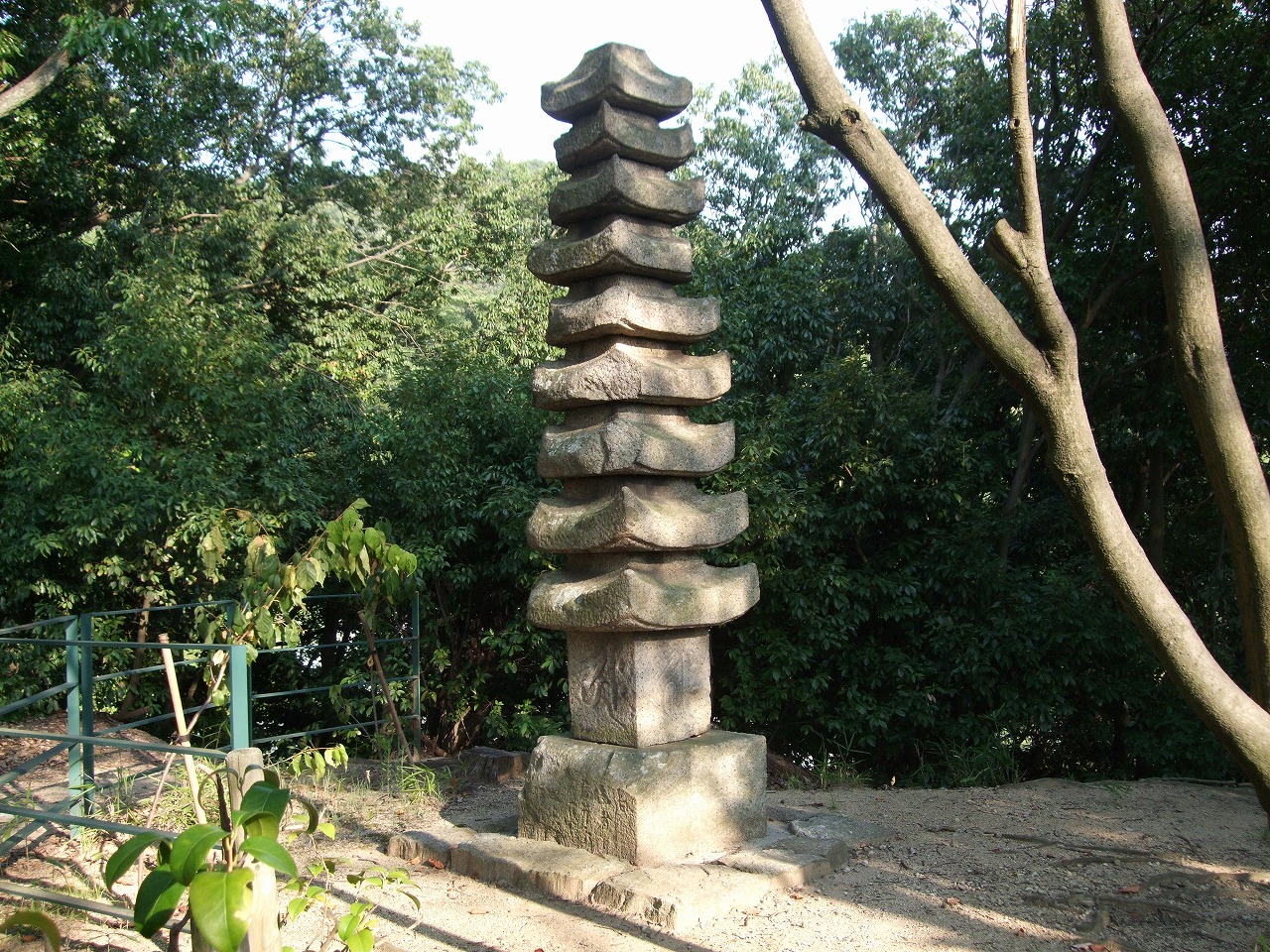 なお、当石塔はもともと相輪を欠く九層であったが、昭和九年の室戸台風で倒壊の際、最上層の屋根石を失い、八層で組み直されたという。その後、昭和五十九年に、地元の中学生ニ人により屋根石が発見され、傍らに置いてあったものを、平成十七年に方角を正して組み直し、再び九層に復元したものである。