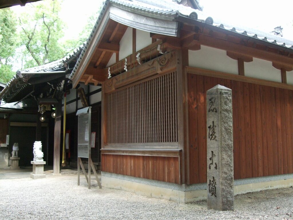 室戸台風、阪神・淡路大震災と、災害を乗り越えて史跡が保存されてきた。史跡があること、それ以上に史跡を自分たちの力で守ってきたことは、本当に誇らしいことである。さらに誇らしいことに、この神社は古い由緒を持ち、鎮座地である岡そのものが縁起の良い場所なのだそうだ。神社の説明板を読んでみよう。