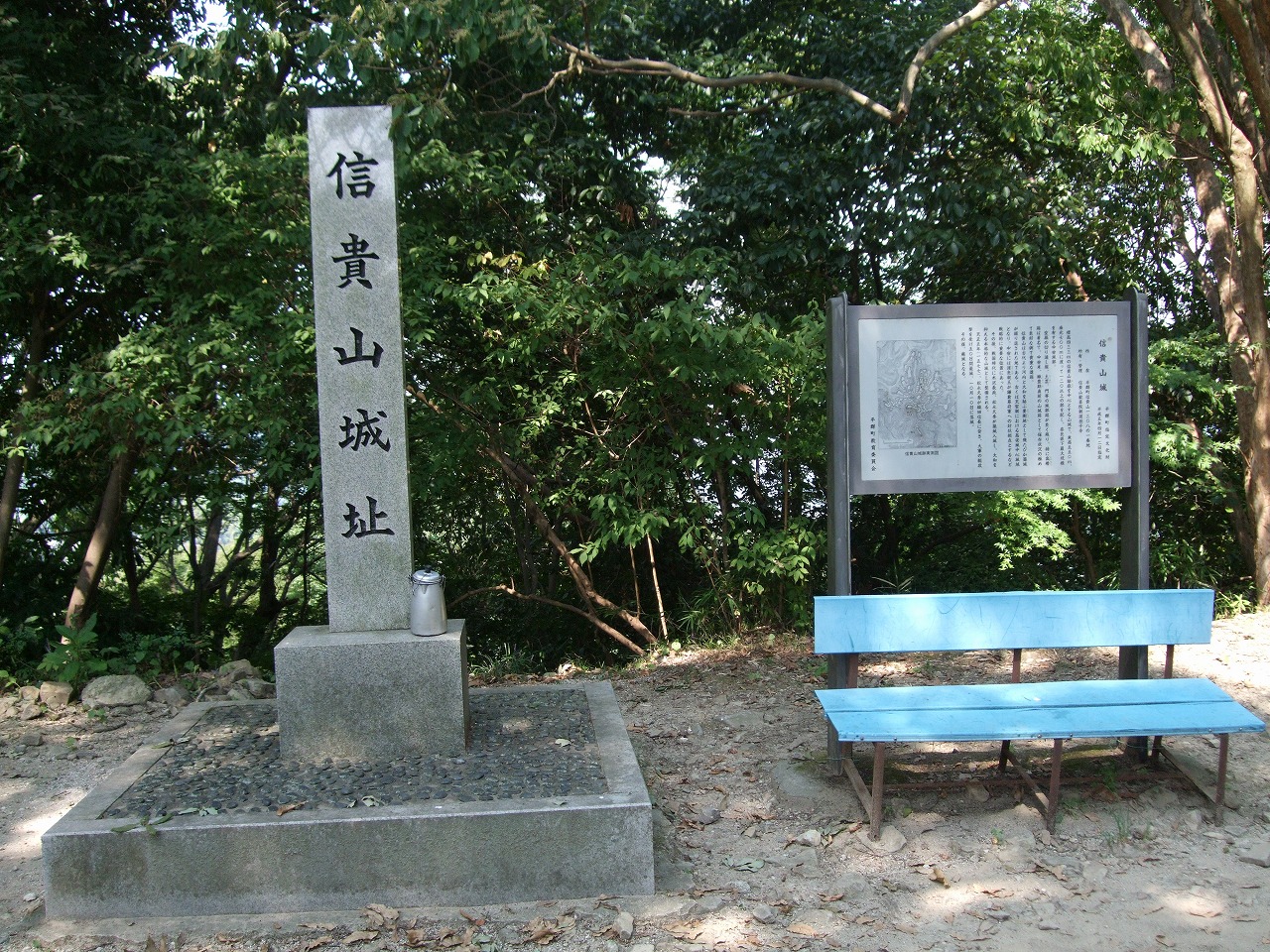 奈良県生駒郡平群町信貴山に「信貴山城址」の石碑がある。平群町指定文化財である。