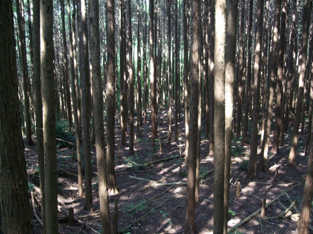 石碑の隣にある説明板には「信貴山城跡実測図」があり、大規模な城であったことが分かる。中でも北東に伸びる尾根に「松永屋敷」という数段の広い郭が造られているのが特徴的だ。下の写真がそれである。