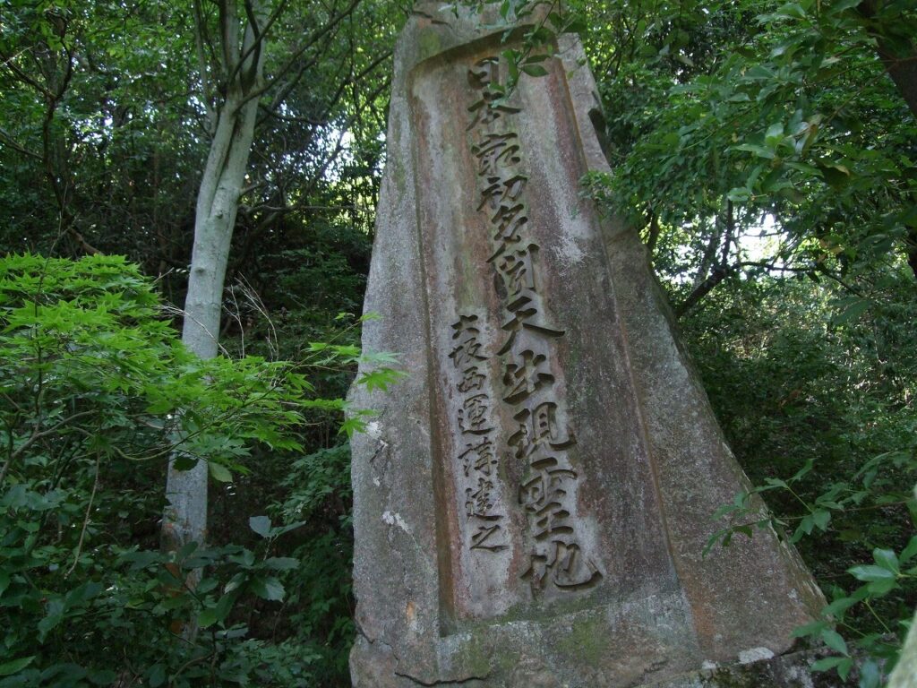 近くに「日本最初多聞天出現霊地」と刻まれた石碑がある。多聞天は毘沙門天のことである。最初に出現したというくらいだから、その後も各地に出現したもうたのだろう。仏像なら各地で拝観したことはあるが、生身の毘沙門天を実見したことはない。信仰心が足らぬのであろう。