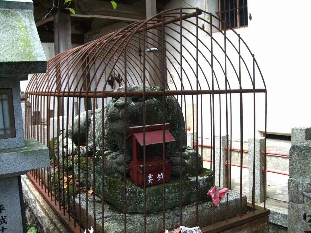 境内には檻に入れられたトラもいる。夜な夜な動き出しては迷惑をかけたのでこうなったのだ。勝手な想像である。