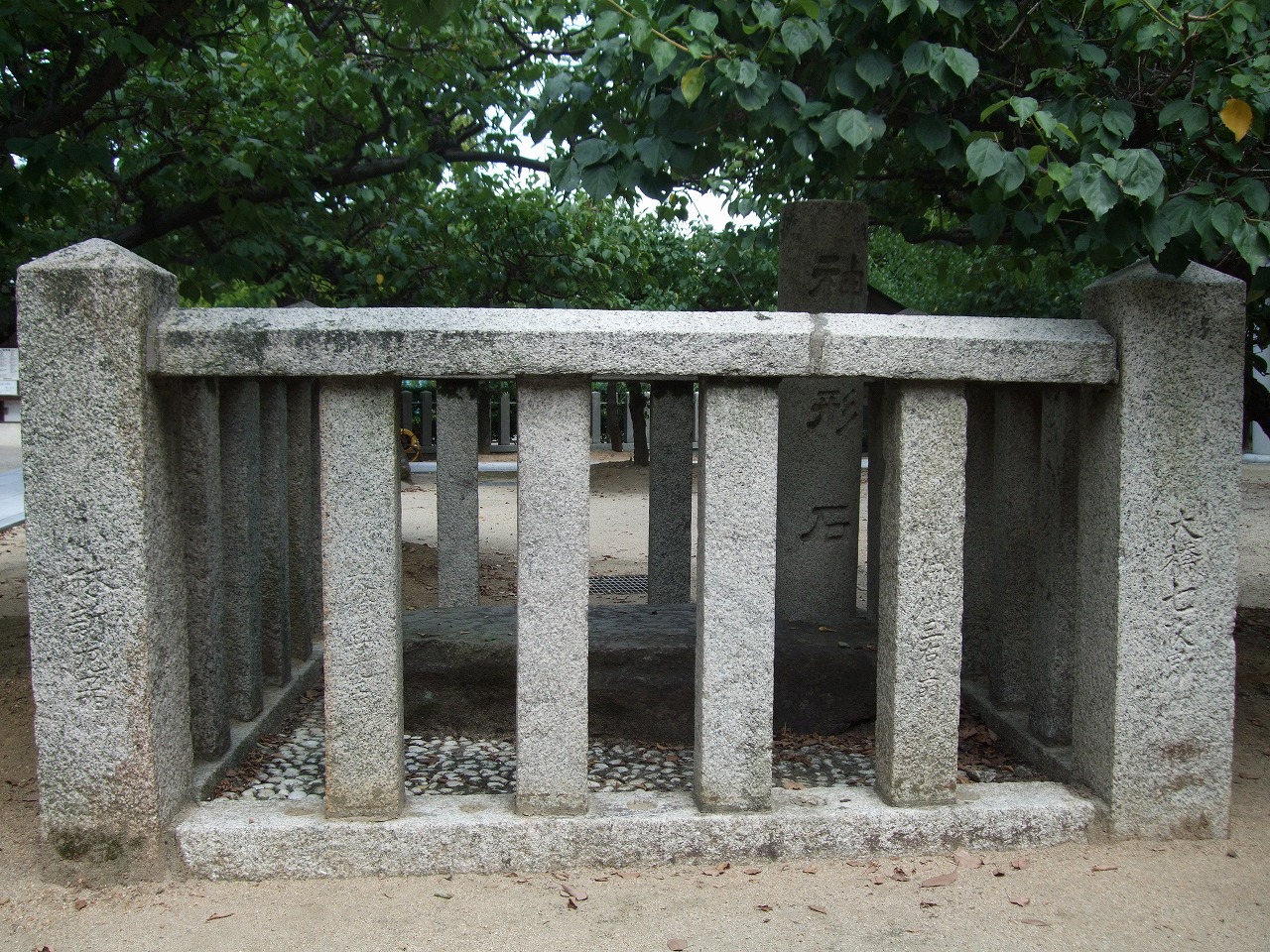 松原市三宅中四丁目の屯倉神社の境内に「神形石」がある。