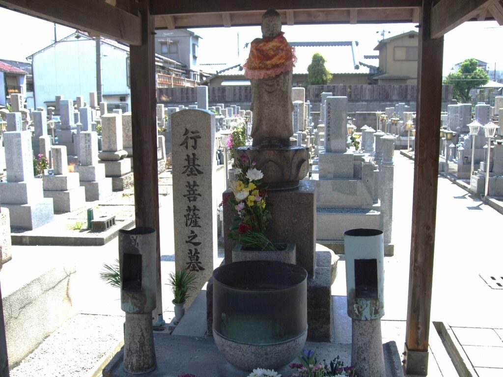 さらに、池のあったあたりから北に向かうと墓地があり、その中に「行基菩薩之墓」を見つけた。さらに古い墓が近くにあるらしい。