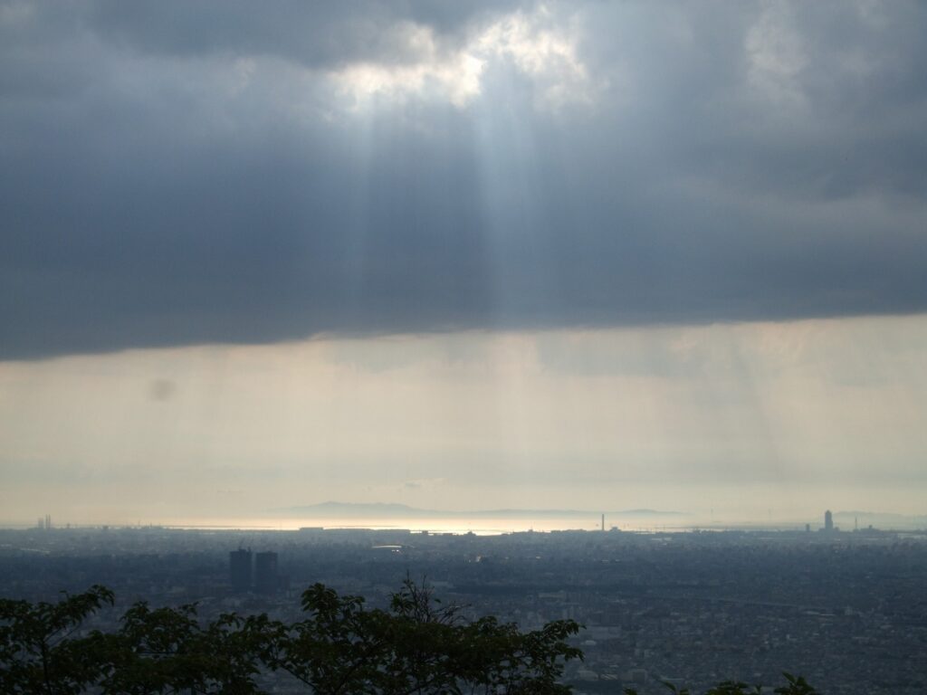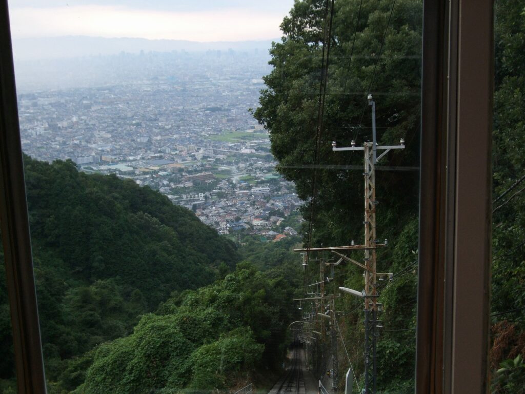 この写真はレーダーから北方2.5kmくらいにある水呑地蔵尊からの展望だが、高安城からも同様な眺望が得られただろう。大阪湾から侵入する外敵の動きを見て取れる。しかも高安山の大阪側は急峻で有効な防衛障壁となりうる。西信貴ケーブルに乗るとそれがよく分かる。