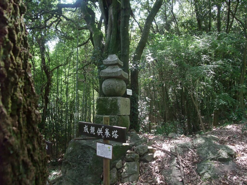 この「藤原成親遺跡」が、成親が無残に処刑された有木の別所にあたる。以前にこちらでレポートしている。成親遺跡と成親供養塔の関係はよく分からないが、同じ山に2か所ゆかりの地があるのは、成親処刑の印象が強かった証左だろう。