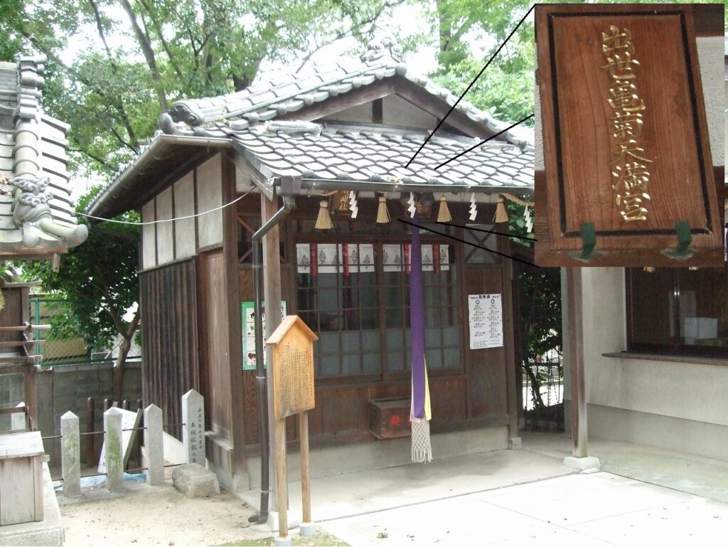 豊中市庄本町一丁目の椋橋総社の境内に「出世亀菊天満宮」がある。祭神は菅原道真である。