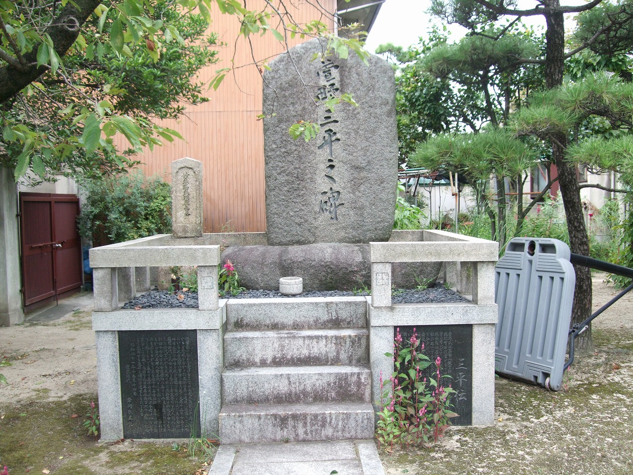 三平の墓は上記二つ以外に、故郷の箕面市、四十七士の眠る東京の泉岳寺にもある。人々が三平の苦悩に共感し、霊魂の安らかなることを願って建てたものだろう。箕面市の墓は昨年に箕面市の有形文化財に指定されている。