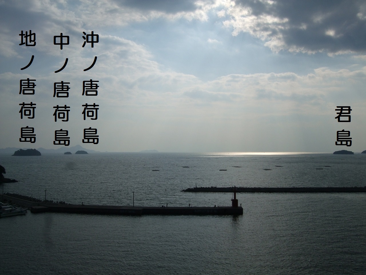 瀬戸内海の美しさは多島美にある。この日、天気はやや不安定で、晴れたり曇ったりしていた。写真では沖の方だけが照らされている。神はこういう一条の光とともに舞い降りるものだと高校生の頃に思ったことがある。そんな光を現国の先生は「太陽のまつ毛」と呼んでいたが、私にはしっくりこなかった。今日は瀬戸内の島にちなむ歌である。