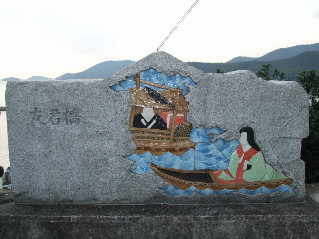 友君は室津のシンボル的な存在らしく、橋の名前にも採用されている。手前の女性が友君、向こうの黒衣は法然上人であろう。